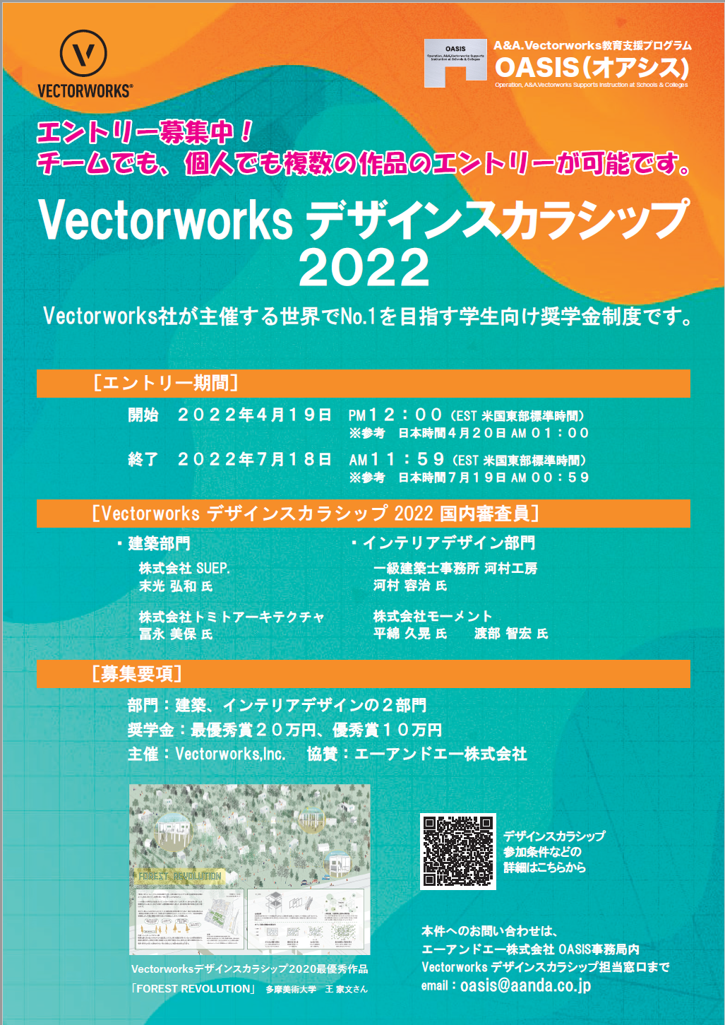 詳細は、 https://oasis.aanda.co.jp/connect/p3684 デザインスカラシップ/ にてご確認ください。